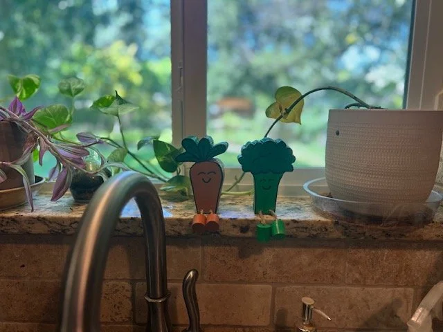 Handmade wooden friends for your windowsill, shelf, or tabletop.